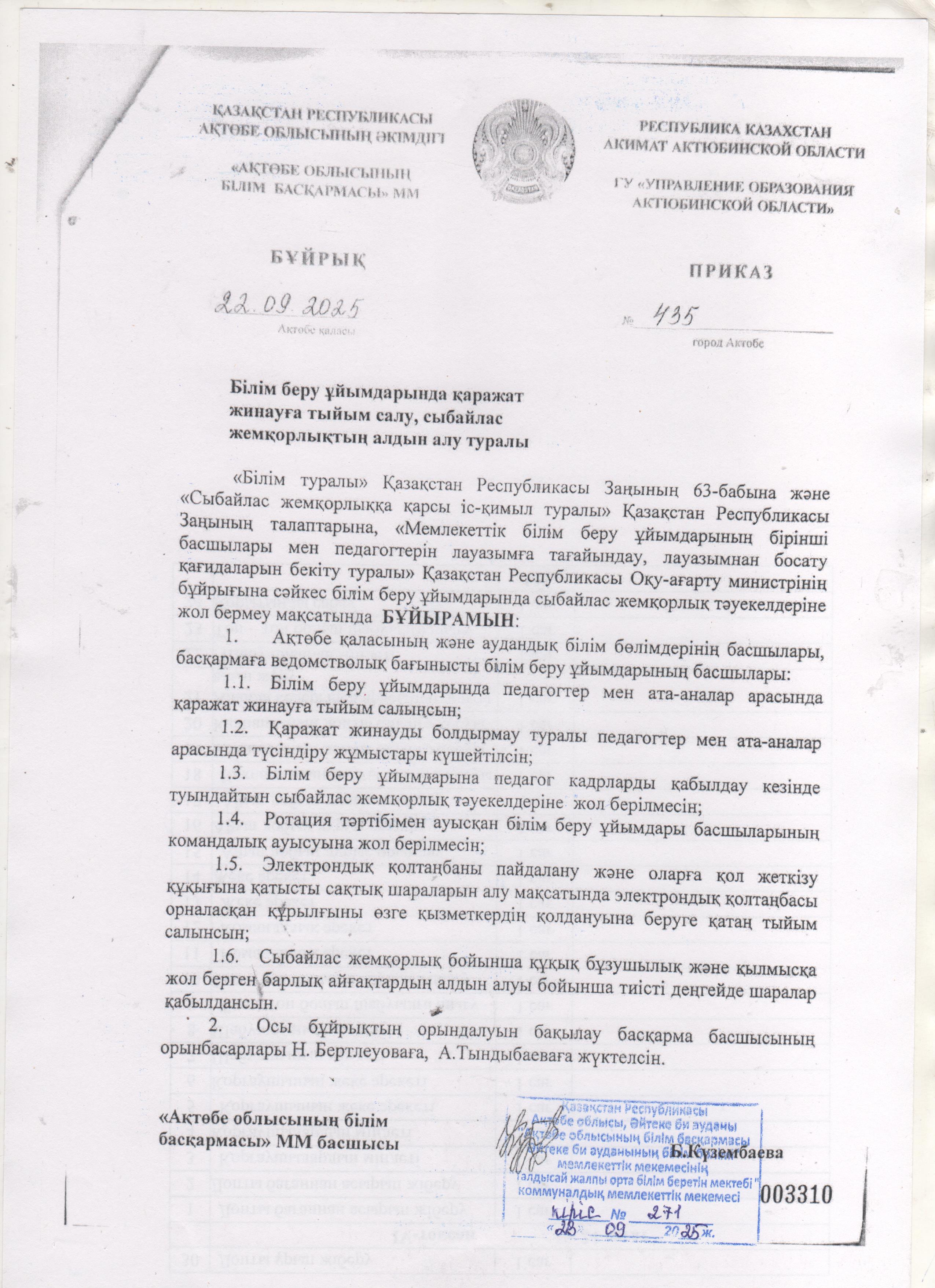 БІЛІМ БЕРУ ҰЙЫМЫ ТУРАЛЫ МӘЛІМЕТ